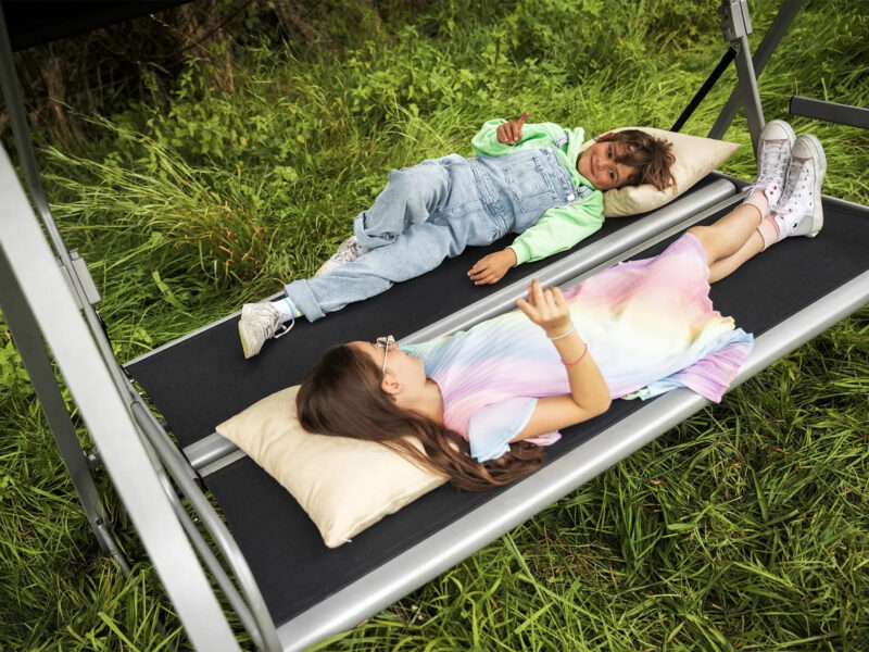 Paradiso Hollywood nie je len hojdačka. Vďaka jednoducho sklopnému operadlu sa dá premeniť na dvojité lehátko, čo vám umožní maximálny odpočinok.