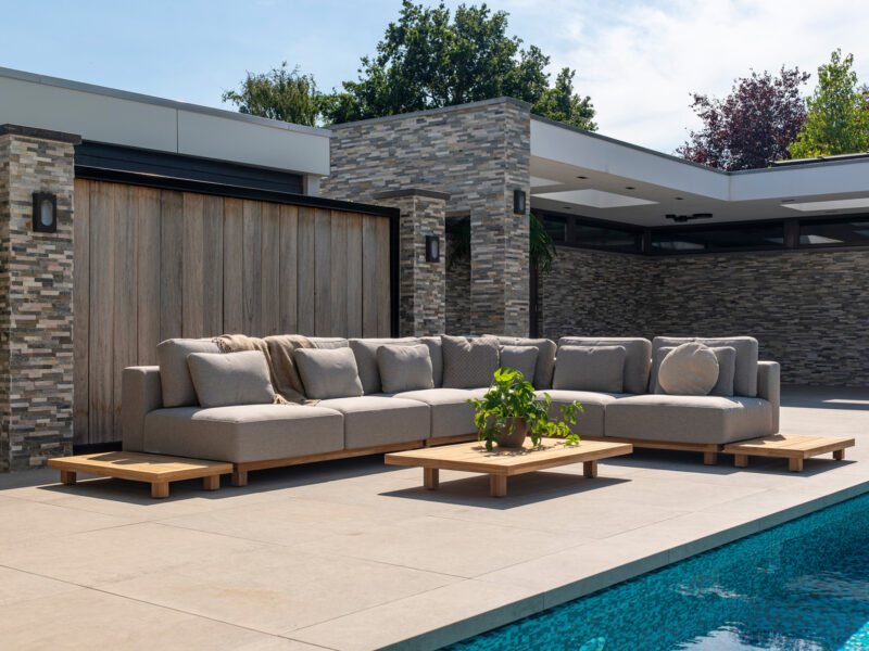 Štýlový konferenčný stolík Paradiso z teakového dreva v prírodnom sfarbení