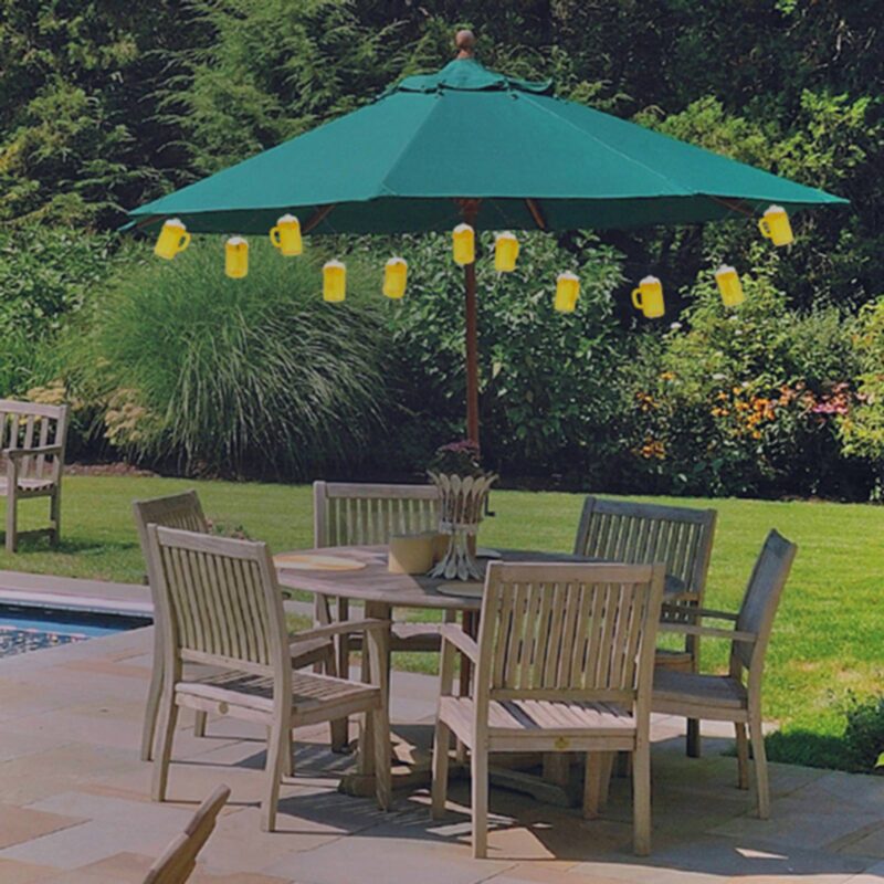 Svetelná reťaz LED Cerveza vybavená vtipnými hrnčekmi na pivo LED svetelná reťaz Cerveza, ktorá je vybavená 20 svietiacimi hrnčekmi na pivo, je zábavným hitom na párty. Vďaka svojmu neobvyklému dizajnu je reťaz svetiel nielen absolútnym pútačom pozornosti na nasledujúcej grilovacej párty, ale tiež zaisťuje útulné svetelné prostredie, keď cez žlté hrnčeky na pivo svieti teplé biele svetlo LED. Pripojovací kábel dlhý 300 cm a externý transformátor sú súčasťou dodávky. – Stupeň krytia IP44