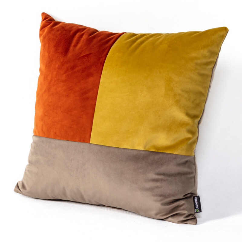 Jedinečný patchworkový vankúš z mäkkého, elegantného zamatu. Originálny charakter mu dodávajú módne kombinácie v troch farbách. Perfektne sa hodí do moderného aj rustikálneho interiéru. Dekoratívny vankúš príjemný na dotyk bude skvelým doplnkom každej pohovky, postele alebo kresla.