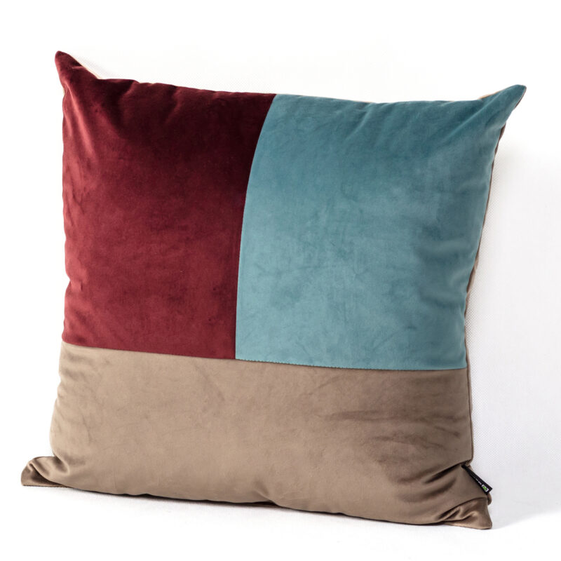 Jedinečný patchworkový vankúš z mäkkého, elegantného zamatu. Originálny charakter mu dodávajú módne kombinácie v troch farbách. Perfektne sa hodí do aranžmánov v modernom aj rustikálnom štýle. Mäkký a príjemný na dotyk, dekoračný vankúš bude skvelým doplnkom každej pohovky, postele alebo kresla.