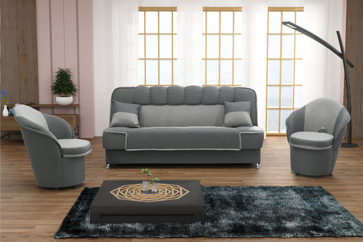 Praktická sedacia zostava PATRIK v modernom prevedení poťahu Malmo 95 a Malmo 90. Zostava obsahuje pohovku a dve kreslá PATRK.Pohovka PATRIK je rozkladacia s úložným priestorom. Po rozhložení vznikne ložná plocha o rozmere 195 x 115 cm. Šmrnc jej dodávajú nožičky v chrómovom vzhľade. Výplň sedáku tvorí bonellová pružina a PUR pena. Vankúše nie sú v cene.Rozmery pohovky š/v/h: 195 x 95 x 88 cm. Výška sedu 48 cm. Kreslo PATRIK má úložný priestor. Výplň sedáku je PUR pena.Rozmery kresla š/v/h: 56 x 85 x 52 cm. Výška sedu 44 cm.Záruka 24 mesiacov.