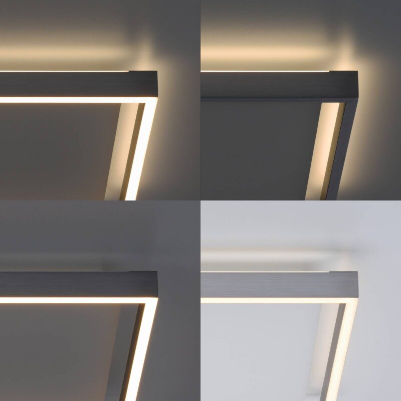 Ovládateľné stropné svietidlo LED Q-Kaan v obdĺžnikovom tvare Stropné svietidlo Q-Kaan LED je moderný, nenápadný osvetľovací objekt, ktorý je vhodný najmä na osvetlenie pracovných plôch v kuchyni. Jeho podlhovastý obdĺžnikový tvar je výsledkom konštrukcie rámu so strieborným vnútorným povrchom. Modul LED nainštalovaný v hornej a dolnej časti vytvára rozsiahle priame svetlo, ako aj nepriame svetlo, ktoré jemne osvetľuje miestnosť. Q-Kaan možno ovládať pomocou dodaného diaľkového ovládania alebo priamo cez aplikáciu pomocou smartfónu. Ovládanie prostredníctvom smartfónu je možné vďaka zabudovanému štandardu ZigBee. Stropné svietidlo stačí integrovať do už nainštalovaného systému inteligentnej domácnosti a získať prístup k mnohým funkciám. Okrem rôznych teplôt svetla možno podľa potreby nastaviť aj jas. Ďalšie možnosti zahŕňajú prepínanie scenárov, vytváranie skupín alebo jednoduché prepínanie dvoch modulov LED. Technické údaje / kompatibilita: – stmievateľné – Nastaviteľná teplota farieb od teplej bielej po univerzálnu bielu – pamäťová funkcia – Ovládanie pomocou priloženého diaľkového ovládača – Kompatibilný s technológiou ZigBee – Hlasové ovládanie je možné priamo pomocou zariadení Echo Plus a Echo Show (2. generácie) – Po integrácii do inteligentného domáceho systému založeného na technológii ZigBee ho možno pohodlne ovládať aj prostredníctvom aplikácie alebo hlasového príkazu Poznámka: Na integráciu do systému Smart Home je potrebný mostík, ktorý nie je súčasťou dodávky.