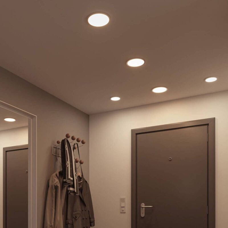 Okrúhly zapustený LED panel Areo VariFit, univerzálny biely, trojstupňovo stmievateľný cez nástenný vypínač LED panel Areo VariFit na inštaláciu do stropu alebo steny je okrúhly, jednoduchý a flexibilný. Panel s nízkou inštalačnou výškou len 1,2 cm a úzkym rámom sa hodí do každého dizajnového konceptu interiéru. Je vybavený univerzálnymi bielymi LED diódami, ktorých svetlo svieti rovnomerne cez difúzor a dá sa prepínať na tri úrovne jasu pomocou existujúceho nástenného vypínača. Pamäťová funkcia uloží zvolený jas až do ďalšieho zapnutia. Zápustný panel je vhodný nielen na nové inštalácie, ale vďaka nastaviteľným upínacím pružinám na zadnej strane sa hodí aj do mnohých existujúcich inštalačných otvorov. V kombinácii s viacerými svietidlami rovnakej alebo rôznej veľkosti panel vytvára nielen skvelý vzhľad, ale poskytuje aj základné osvetlenie väčších miestností. Bezproblémové je aj použitie v kúpeľni alebo iných vlhkých miestnostiach, pretože panel má príslušné krytie IP44 – Nastaviteľné upínacie pružiny na zadnej strane – 3 úrovne jasu 100 %, 50 % a 25 %