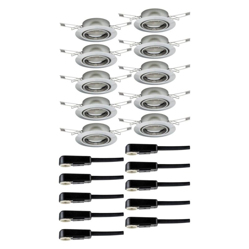Kovová základňa pre vstavané reflektory v praktickej súprave 10 kusov Malá základňa pre vstavané reflektory sa dodáva v súprave desiatich kusov a umožňuje inštaláciu veľkoplošného osvetlenia v domácnosti. Puzdro je vyrobené z odolného kovu a nachádza sa v ňom zásuvka GU10, do ktorej je potrebné vložiť svetelný zdroj podľa vlastného výberu. Bodové svietidlo sa dá v okamihu otočiť a prispôsobiť priestorovým podmienkam.
