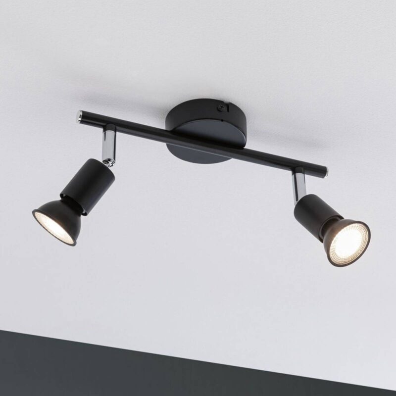 Klasický stropne bodove svetla v nenápadnom dizajne, dvojplameňový Stropné svietidlo Carolina má štíhly dizajn a jasné tvary, ktoré vďaka farebným akcentom vyzerajú veľmi harmonicky a šikovne dotvárajú celkový obraz. K okrúhlemu stropnému prístrešku je vodorovne pripevnená tyč antracitovej farby, ktorá je zakončená jemnými chrómovými krytkami vľavo a vpravo. Dve chrómované ramená vedú nadol, na koncoch ktorých sú pomocou kĺbov pripevnené dve škvrny. Tieto je možné podľa potreby zarovnať a cielene tak osvetliť.