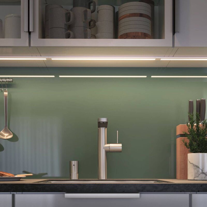 Konektor hraničnej čiary pre nábytkové svietidlo Clever Connect Vďaka lineárnemu konektoru Border možno dve svietidlá zo série Clever Connect navzájom kombinovať pomocou jednoduchých zásuvných spojení.