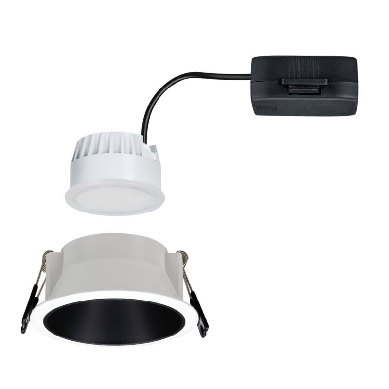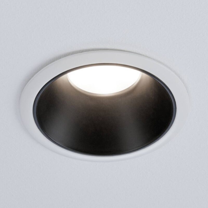Zapustené LED zapustené stropné svietidlo Cole v čierno-bielom prevedení Zvláštnosťou zapusteného svietidla Cole je, že jeho svetelný zdroj LED je zasadený hlboko do stropu. Svetlo najskôr dopadne na čierny matný povrch, až potom sa distribuuje jemne a bez oslnenia. Výsledkom je uhol lúča 110 °. Bodové svetlo je možné pomocou bežného nástenného vypínača stlmiť v troch stupňoch. Okrem toho je vybavený triedou ochrany IP44, a preto je vhodný aj na použitie v kúpeľni.