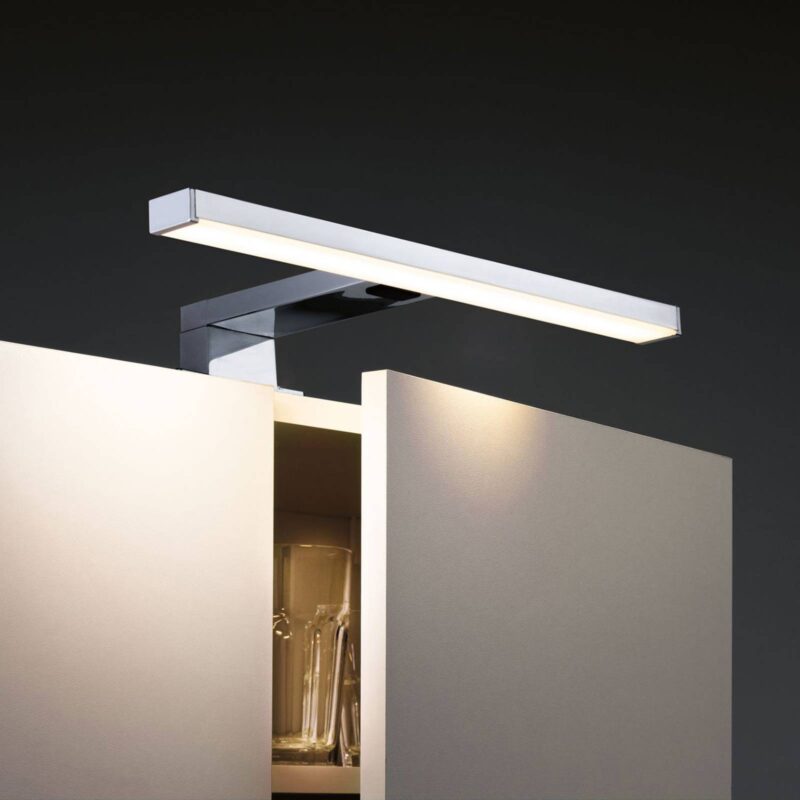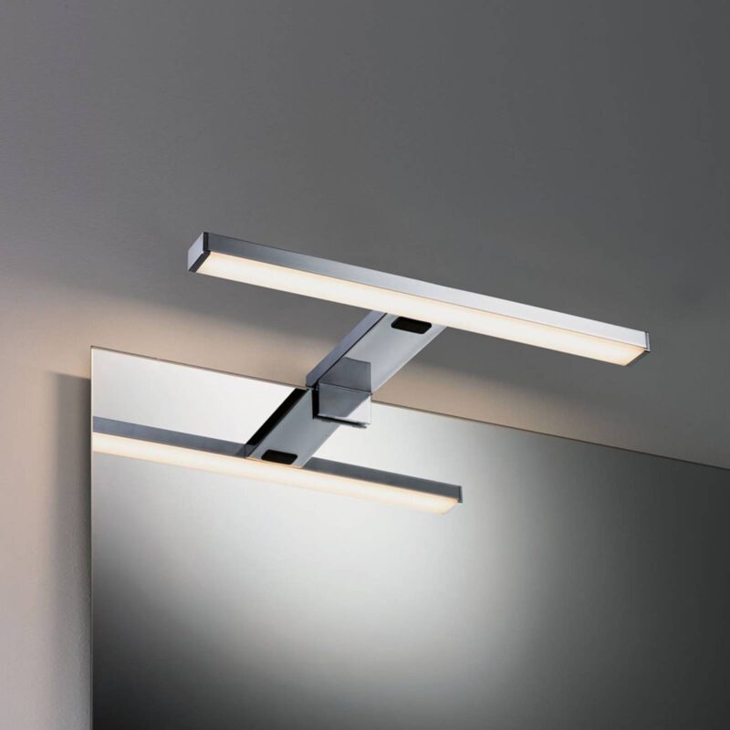 LED zrkadlové svietidlo Selo s funkciou laditeľnej bielej Správne svetlo kedykoľvek – či už pri rannej rutine, líčení alebo na ceste do postele, zrkadlové svietidlo Selo je ideálnym osvetľovacím prvkom nad kúpeľňovým zrkadlom. Chrómový kryt dokonale ladí s mnohými štýlmi nábytku a svetlo LED diód vyžaruje priamo nadol po celej šírke cez úzke, podlhovasté tienidlo. Integrovaným vypínačom sa dá jednoducho zapnúť a vypnúť a prostredníctvom neho možno zvoliť aj farbu svetla – teplá biela (2 700 K), univerzálna biela (4 000 K) alebo denné svetlo (6 500 K) nastaviteľné prostredníctvom integrovaného vypínača