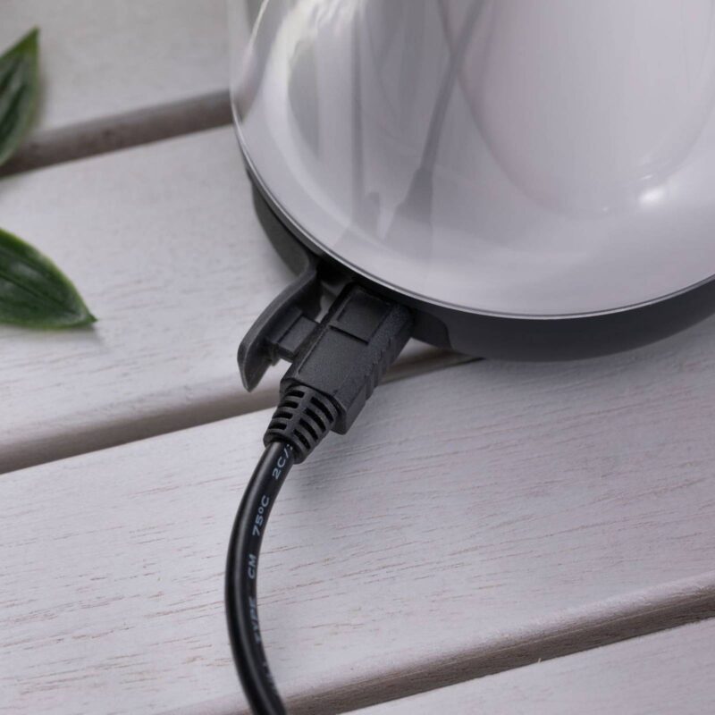 Nabíjateľná LED stolová lampa Capulino, napájaná z batérie Či už doma na záhrade alebo pri kempingu – stolová lampa LED napájaná z batérie Capulino poskytuje všade svetlo, pretože je napájaná z batérie a nevyžaduje elektrické pripojenie. Prenosnú stolovú lampu je možné stlmiť v troch fázach. Nabíja sa dodávaným káblom USB a poskytuje svetlo až 8 hodín pri úplnom nabití pri najnižšej úrovni jasu a až 4 hodiny pri najjasnejšom nastavení. Stolová lampa LED Capulino s krytím IP44 chránená pred poveternostnými vplyvmi, takže ju možno použiť aj vonku. Je vyrobená z plastu a je vybavená integrovaným vypínačom.