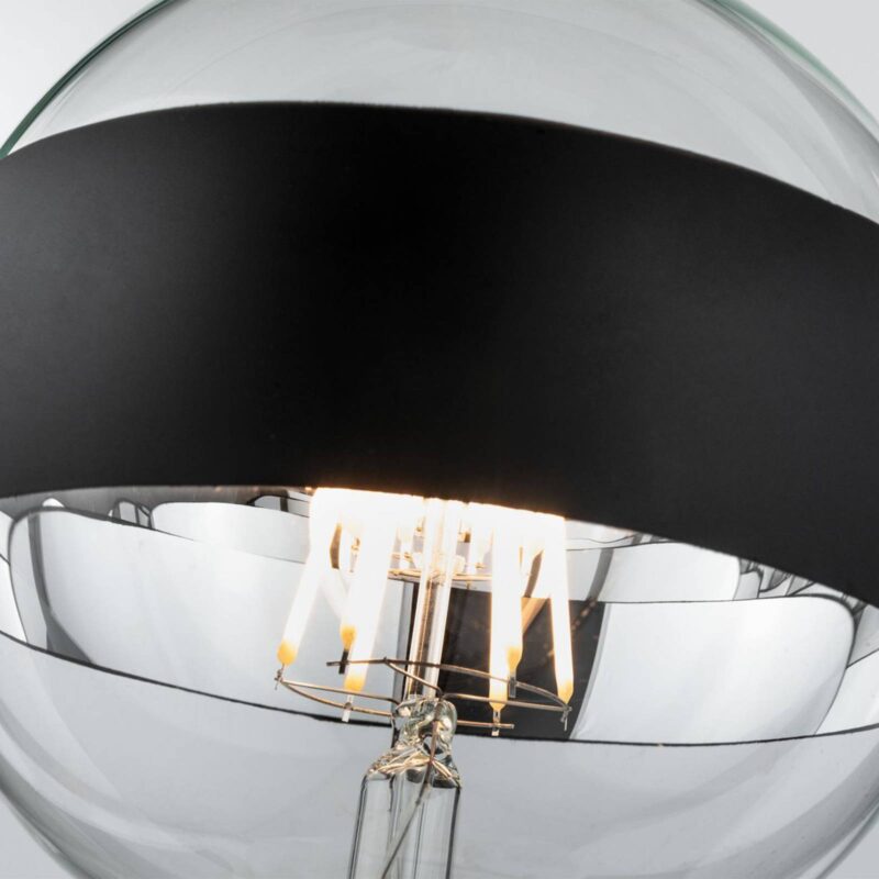 Sklenená LED žiarovka E27 6,5 W G125 s teplou bielou farbou svetla a matným čiernym kruhovým reflektorom