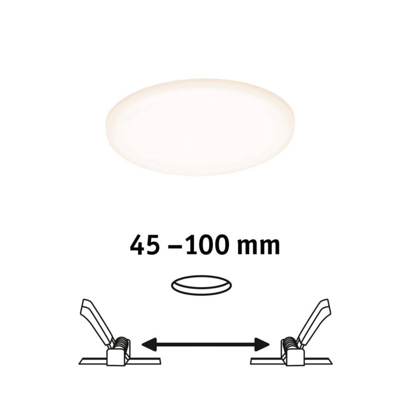 Bezrámový, okrúhly zapustený panel Veluna LED vytvára plochu čistého svetla! Zapustený panel Veluna spája niekoľko výhod: poskytuje jasné, teplé biele svetlo. Jeho elegantný, minimalistický dizajn a plochý tvar umožňujú, aby svietidlo prakticky zmizlo v strope. Vďaka vysokokvalitnej technológii LED a matnému difúzoru je svetlo rovnomerné a neoslňuje. Vďaka variabilným upínacím pružinám je zapustený panel ideálnou náhradou aj za existujúce bodové svietidlá, pretože upínacie pružiny sa dajú plynule nastaviť tak, aby sa dali použiť existujúce otvory na vŕtanie. Vďaka stupňu krytia IP44 je panel vhodný aj do vlhkých miestností, ako sú kúpeľne, kuchyne alebo kúpeľné priestory. Velora sa dá použiť ako stropné alebo nástenné svietidlo a dá sa použiť takmer vo všetkých obytných priestoroch.