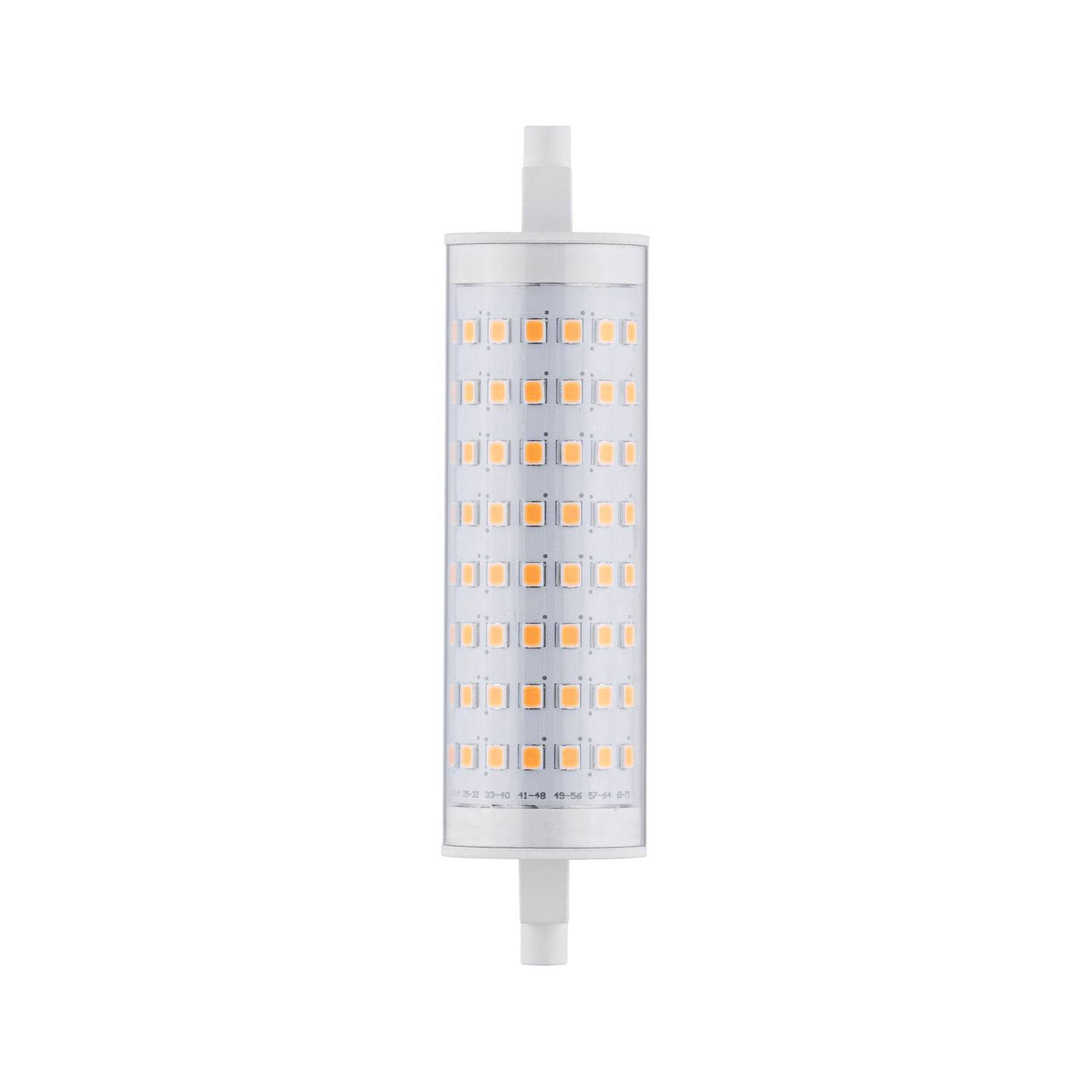 LED žiarovka R7s v tvare tyče, 13 W, 1 521 lumenov, stmievateľná Svietivosť teplých bielych LED žiaroviek R7 vo forme tyče môže nahradiť 100 W halogénové tyče. Jas svietidla možno nastaviť pomocou stmievača R + C pre elektrický transformátor.