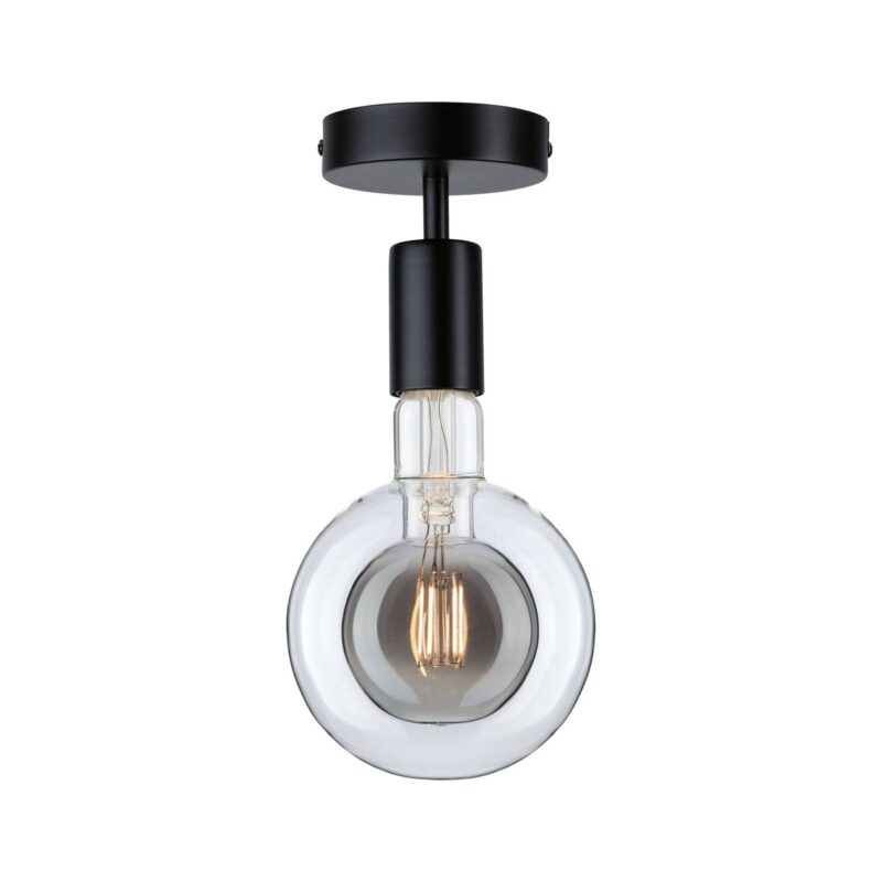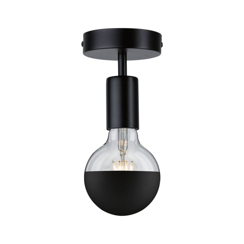 Stropné svietidlo Malja – vhodné najmä pre žiarovky do predných a kruhových zrkadiel Stropná lampa Malja svojim jednoduchým čiernym kovom necháva výberom špeciálneho zdroja svetla veľa priestoru pre individuálny dizajn. Okrúhly stropný držiak končí krátkym spojením v čiernom matnom ráme. Relatívne nízka výška umožňuje jeho použitie aj v malých a nízkych miestnostiach. So stmievateľnými LED žiarovkami v mnohých tvaroch a farbách je možné pokračovať v klasickom dizajne aj v trendy koncepte a vždy vás vyzvú k zmenám, ktoré sú finančne obmedzené.