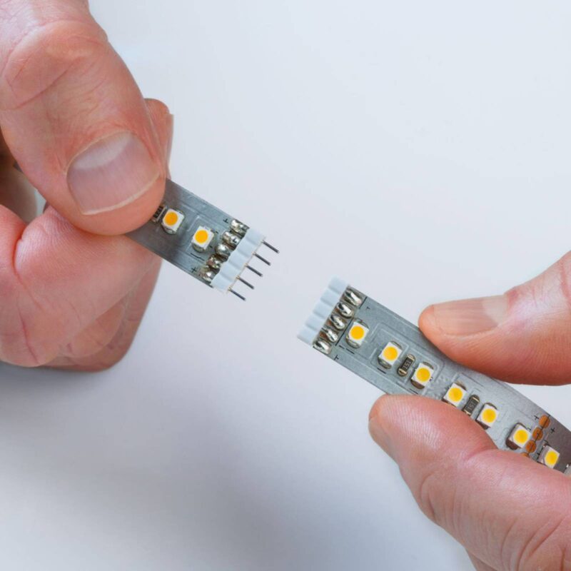 MaxLED 250 Strip extension, laditeľná biela, do interiéru – 30 LED diód na meter – deliteľné 16,7 cm / 5 LED diód – pre rozšírenie základnej množiny – jednoduché pripojenie vďaka 5-pinovému zástrčkovému systému – S lepiacou páskou na zadnej strane
