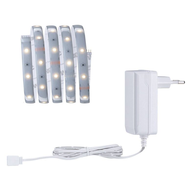 Sada pruhov MaxLED 250, teplá biela, vhodná do vlhkých miestností – Dodávka vrátane napájacieho vedenia a zásuvného transformátora – vďaka povlaku „Protecting Cover“ s ochranou proti striekajúcej vode (IP44); použiteľné v kúpeľni atď. – 30 LED diód na meter – deliteľné po 16,7 cm / 5 LED – Vďaka 5-pólovému konektorovému systému sa dá ľahko rozšíriť – stmievateľné pomocou samostatne dostupného diaľkového ovládača (pozri príslušenstvo) – s lepiacou páskou na zadnej strane