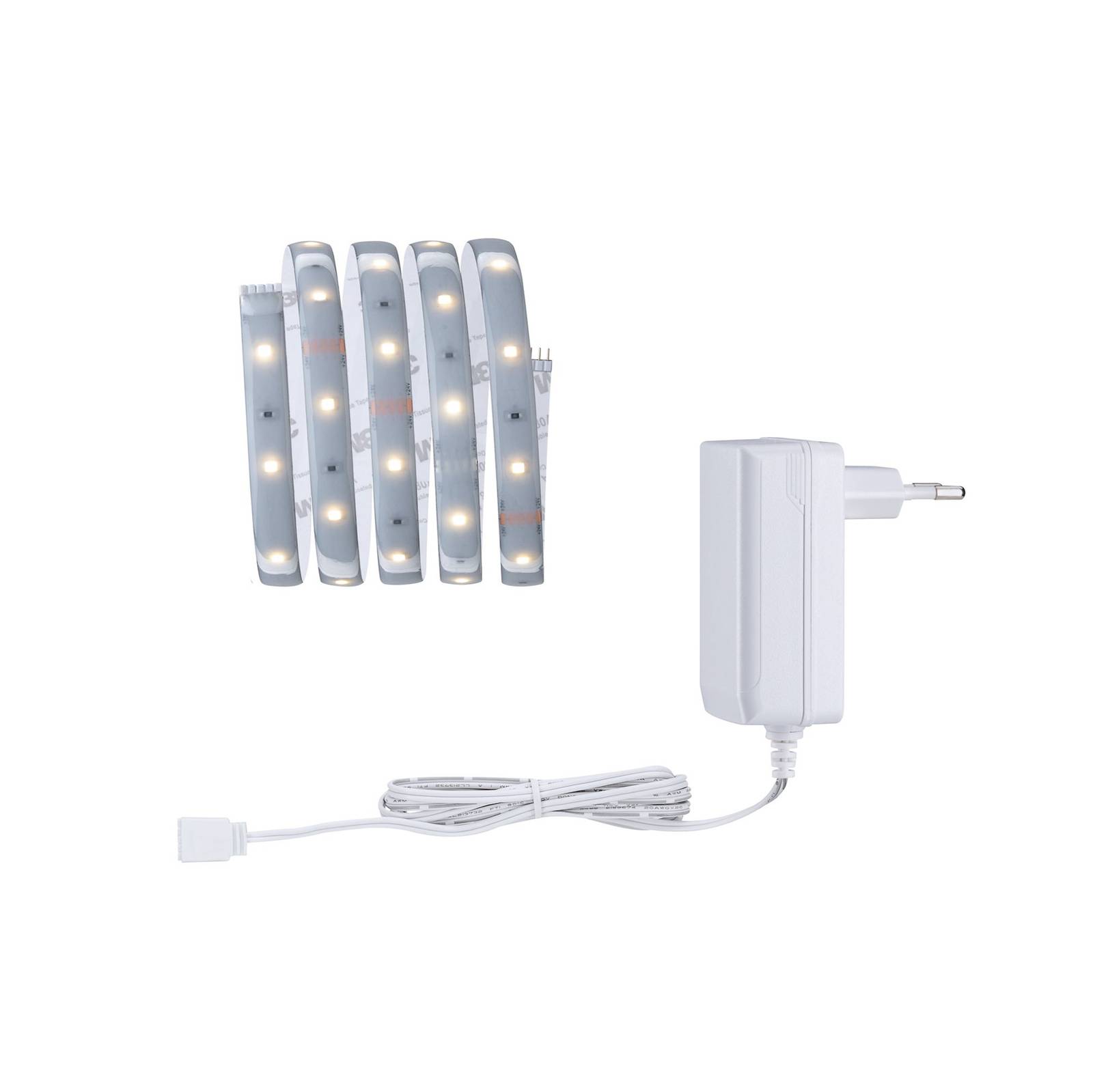Sada pásikov MaxLED 250, teplá biela, vhodné do vlhkých miestností – dodávané s prívodným káblom a transformátorom do zásuvky – vďaka povrchovej úprave „Protecting Cover“ s ochranou proti striekajúcej vode (IP44); možno použiť v kúpeľniach a pod. – 30 LED diód na meter – každú 16,7 cm / 5 LED diód možno rozdeliť – jednoduché predĺženie vďaka 5-pólovému systému konektorov – možnosť stmievania pomocou samostatne dostupného diaľkového ovládania (pozri príslušenstvo) – s lepiacou páskou na zadnej strane