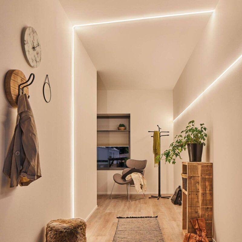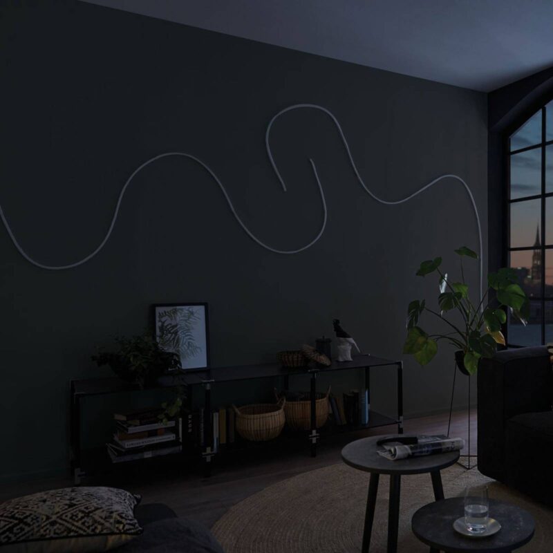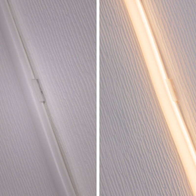 Jedinečný dizajn osvetlenia so základnou sadou MaxLED Flow Základná sada MaxLED Flow vyžaruje rozsiahle svetlo bez viditeľných LED bodov. MaxLED Flow je vybavený flexibilným profilom a je zapuzdrený s veľkým uhlom lúča. Pripevnenie je možné v priamych úsekoch, ako aj v krivkách. Tento jedinečný svetelný prvok má krytie IP67, takže efektívny dizajn je možný aj vo vlhkých miestnostiach a wellness zónach. Sada obsahuje okrem lišty a napájacieho zdroja aj sotva viditeľné, priehľadné príchytky, skrutky a hmoždinky. – Dá sa podľa potreby skrátiť