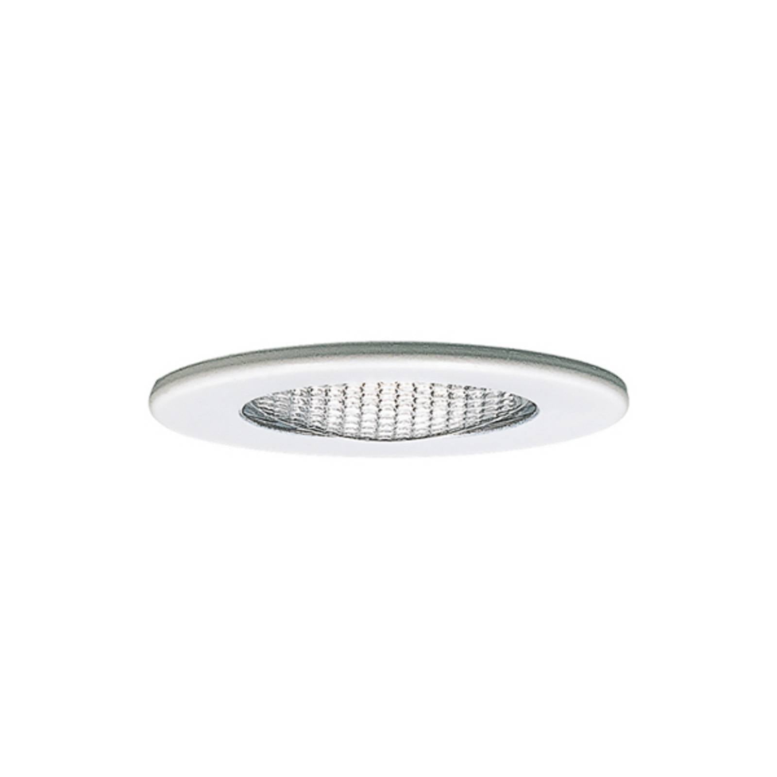 Jednoduché zapustené svietidlo do nábytku Dal so skleneným prvkom Jednoduché okrúhle svietidlo má biely lakovaný kruh. Lampa nie je zložená z jednoduchého kovu, ale má sklenené telo s mriežkovanou povrchovou štruktúrou. Táto štruktúra môže svetlo lámať a diskrétne rozptýliť. Výsledkom je, že osvetlenie nepôsobí príliš jasne, ale je mierne tlmené. Jasné svetlo osvetľuje širokú oblasť a nevyžaruje iba smerom nadol. Zapustené nábytkové svetlo harmonicky ladí s rôznymi obytnými priestormi.