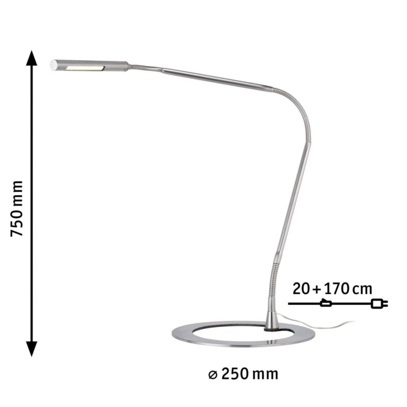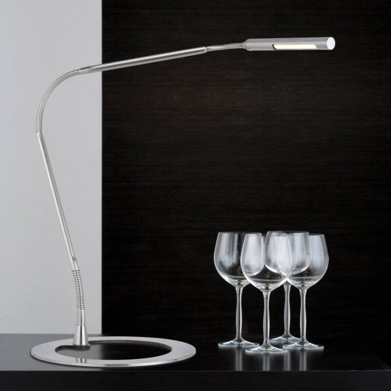 PLAZA – LED lampa na písací stôl v nádhernom dizajne s elegantným husím krkom – ideálna aj ako klavírna lampa Podstavec lampy v tvare prstenca, obzvlášť úzky a pružný krk svetelného zdroja a takmer rovnako úzka hlava svetla – lampa na písací stôl by sotva mohla byť elegantnejšia. Táto stolná lampa LED sa môže výborne používať aj ako klavírna lampa. Okrem toto je táto lampa na písací stôl osadená diódami LED a je tiež energeticky úsporným variantom osvetlenia písacích stolov. – so zástrčkovým transformátorom a spínačom – 230/12 V