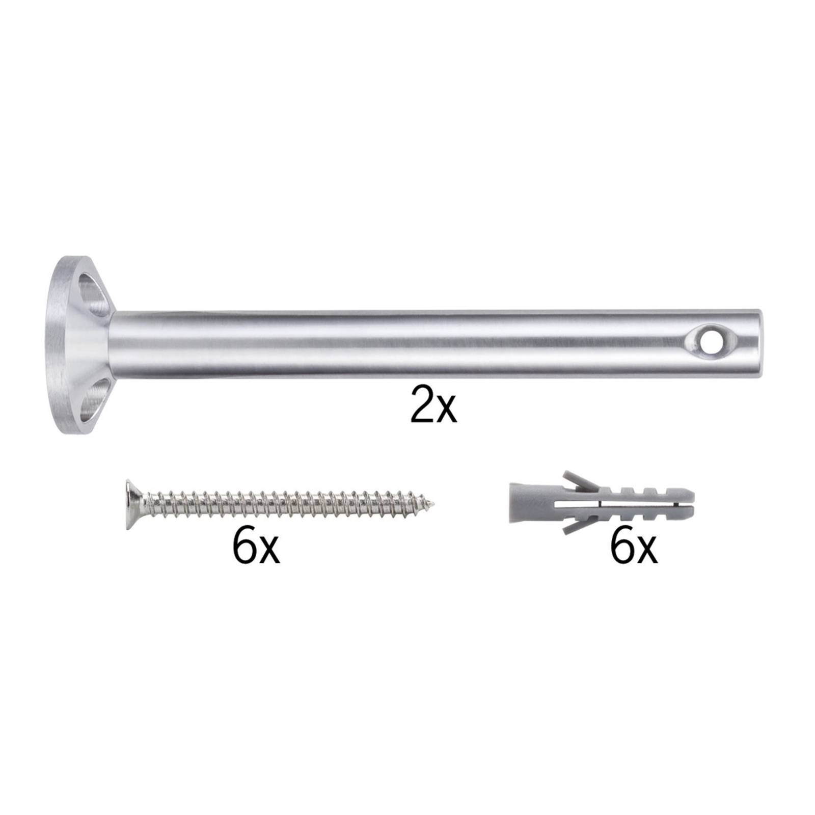 Nerezový deflektor / zavesenie (stropný držiak) na naskrutkovanie pre káblový systém Light & Easy v kompletnej sade 2 z hliníka. Masívna podpora je zaistená pripevnením deflektora k trom skrutkám a hmoždinkám.