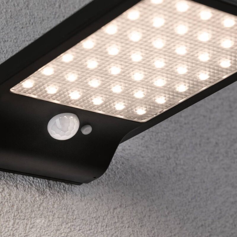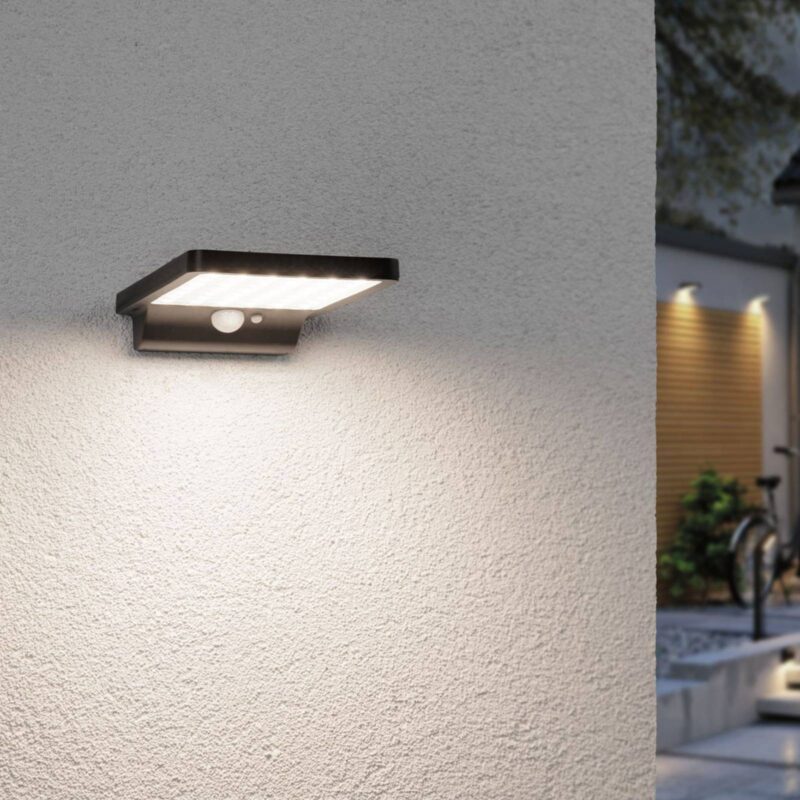 Čierne LED solárne vonkajšie nástenné svietidlo Solveig s integrovaným snímačom pohybu Vonkajšie nástenné svietidlo Solveig LED je vybavené solárnym modulom, ktorý zabezpečuje pravidelné nabíjanie integrovanej batérie. Nástenné svietidlo tak má nielen moderný a nadčasový dizajn, ale sľubuje aj technickú životnosť a účinnosť. Jeho plochý dizajn umožňuje, aby harmonizoval s okolím a pôsobil nenápadne na fasáde každého domu. Vďaka zabudovanému snímaču pohybu sa svetlo zapne len vtedy, keď ho naozaj potrebujete, a vždy vám v tme ukáže spoľahlivé osvetlenie. Snímač pohybu možno ovládať pomocou malého spínača na kryte. – Čas nabíjania približne 8-10 hodín – vrátane súmrakového senzora (< 20 lux), trvanie svetla 15 sekúnd - Rozsah 2 m - Uhol pokrytia 120