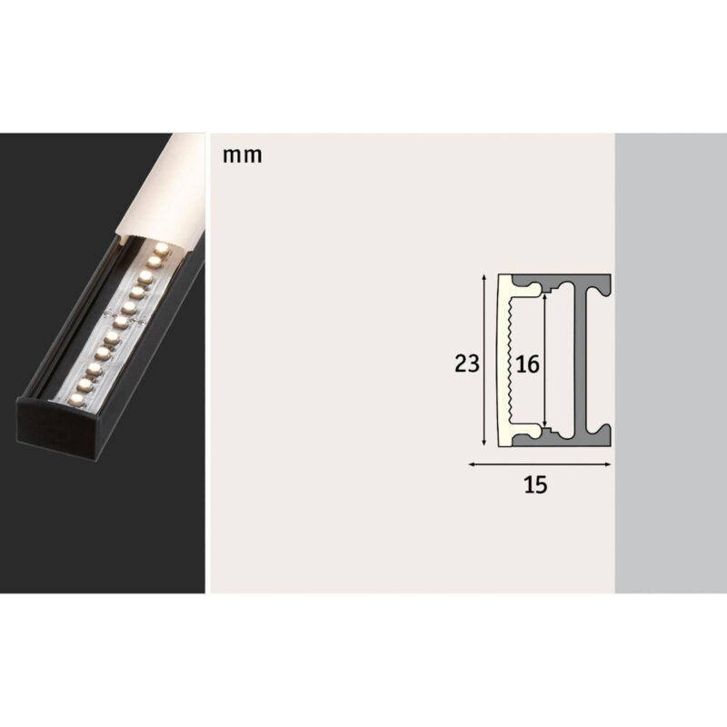 Paulmann Square profil, čierna, difuzér biela, 1 m
