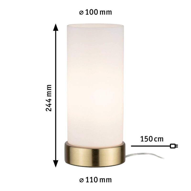 Stolová lampa Pinja s mosadzným podstavcom Stolová lampa Pinja ponúka svetlé akcenty v obývacej izbe alebo adekvátne okolité osvetlenie nočného stolíka. tienidlo na lampu z opálového skla zaisťuje vyžarovanie svetla bez oslnenia. Tento krásny dávkovač svetla sa dá ľahko zapnúť a vypnúť pomocou dotykového spínača integrovaného v základni. – vrátane napájacieho vedenia so zástrčkou