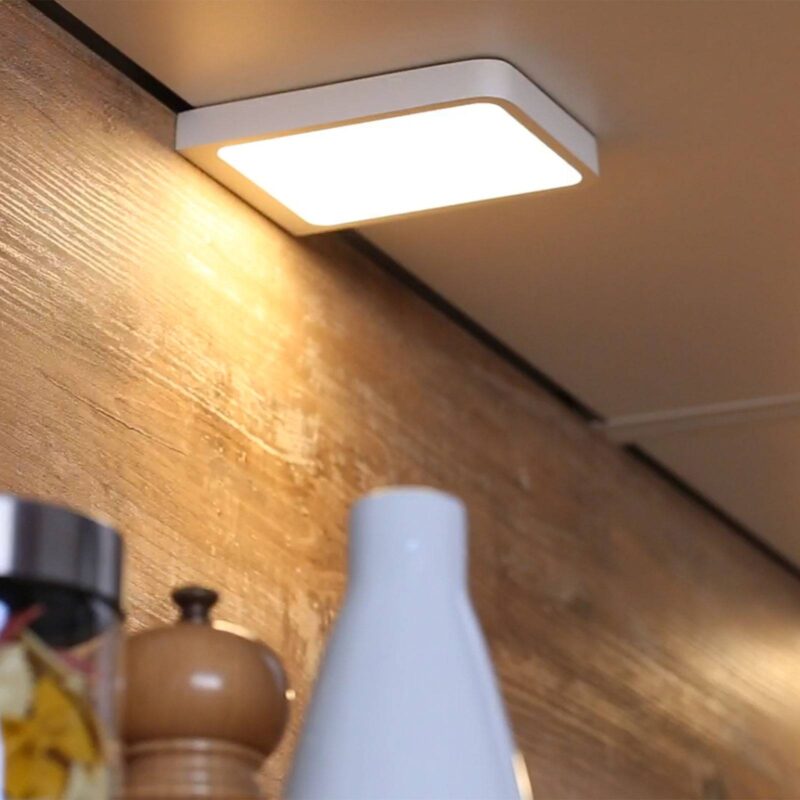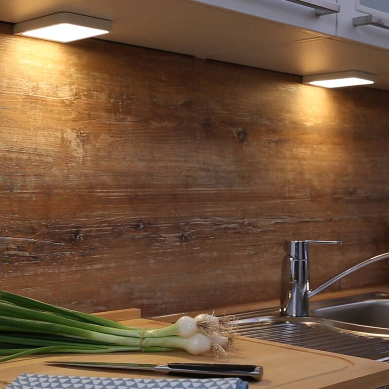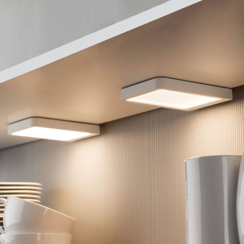 LED prisadené svietidlo Vane v sade 2 – pre montáž pod skrinky a výstupky Osvetlenie spodnej skrinky Vane v praktickej súprave v prevedení 2 je ideálnym zdrojom svetla pre priame osvetlenie pracovnej plochy v kuchynskej linke alebo police na chodbe. Vzhľad obdĺžnikovej a bielej lampy je jednoduchý a moderný. Zahrnutý je požadovaný pripojovací materiál pre obidva prídavné panely s dvoma koncovými káblami a konektormi a spoločné napájacie vedenie s transformátorom a plochú zástrčku na napájanie cez zásuvku. Nechýbajú ani upevňovacie skrutky na pripevnenie konektorov, ktoré držia a súčasne napájajú svetlá.