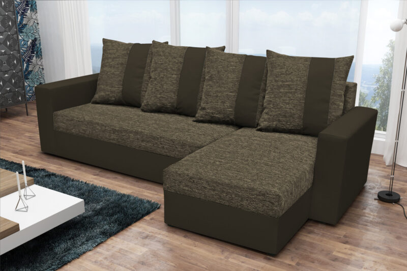 Rohová sedacia súprava PELETON je v atraktívnom a štýlovom prevedení. Je vhodná do moderných obývacích priestorov.Sedačka je vyrobená z PUR peny PU T30, v kombinácii s vlnovcovými pružinami. Je očalúnená kvalitnou látkou Kornet 12 a ekokožou Dolaro 33.Súčasťou sedacej súpravy sú 4 vankúše, ktoré slúžia ako opierky chrbta. Disponuje praktickým úložným priestorom. Spacia plocha: 200 x 133 cm. Je vhodná na príležitostné spanie.Rozmery (š,v,h): 230 x 69 x 133 cm. Výška sedadla: 40 cm.Sedačku si vďaka univerzálnemu rohu poskladáte podľa potreby, buď v pravom, alebo v ľavom prevedení.V našej ponuke nájdete sedačky PELETON aj v iných prevedeniach.Dodávame v demontovanom stave.