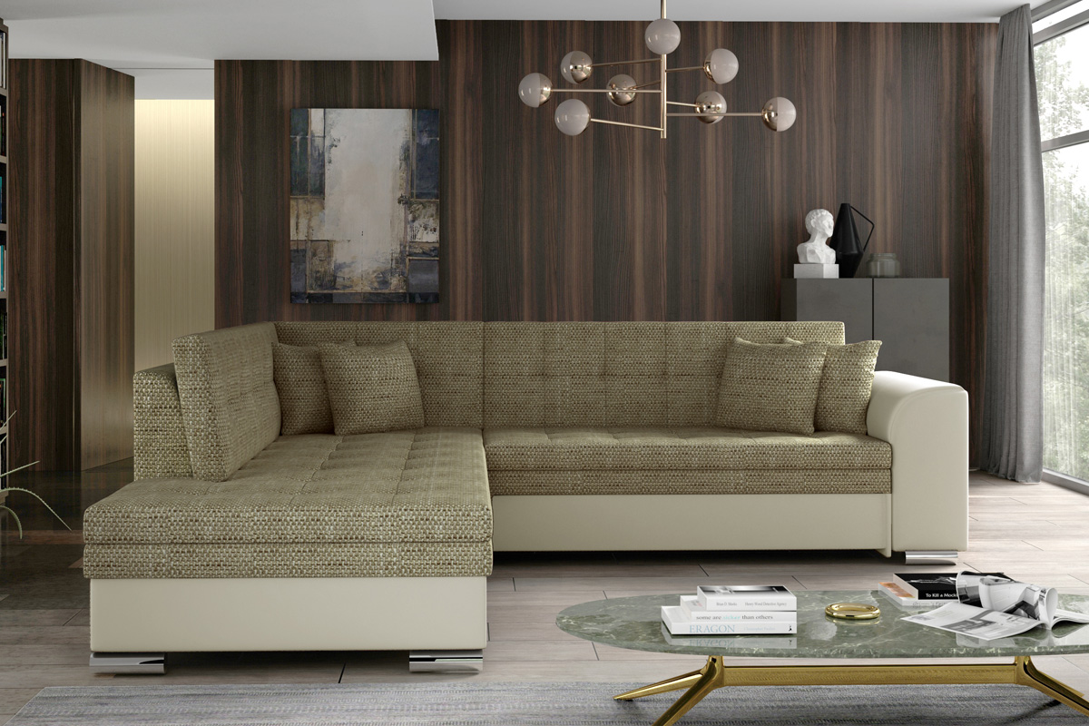Sedačka PENNY patrí medzi moderné rohové sedačky. Štýlový dizajn v sebe spája rovné línie, zjemnené zaoblením opierok rúk a chrbta. Elegantné prešívanie vytvára vzor na sedacej aj opierkovej časti. Celkový vzhľad dopĺňajú dekoračné vankúšiky, ktoré sú súčasťou sedačky. Tento dominantný kúsok nábytku rozžiari celú miestnosť a stane sa jej neoddeliteľnou súčasťou. Vďaka možnosti rozkladu si vytvoríte spaciu plochu 200 x 126 cm, vhodnú na príležitostné spanie. Dolphinmechanizmus zabezpečí jednoduchú manipuláciu pri rozklade sedačky. Sedačka je vyrobená v kombinácii vlnovcovej pružiny a PUR peny. Touto kombináciou získate maximálne pohodlie pre sedenie či leňošenie. Hustota peny sedacej časti je T3030, hustota peny opierok je T2542.Sedačka je vyrobená v ľavom prevedení rohu. Je celočalúnená, vhodná aj na umiestnenie v priestore. Na čalúnenie je použitá kombinácia látky Berlin 03 a eko-kože Soft 33. Celkové rozmery (š/v/h): 260 x 80 x 205cm. Hĺbka sedenia 58 cm, výška sedenia 40 cm.V našej ponuke nájdete túto sedačku aj v opačnom prevedení rohu ako aj v ďalších módnych a štýlových farbách.