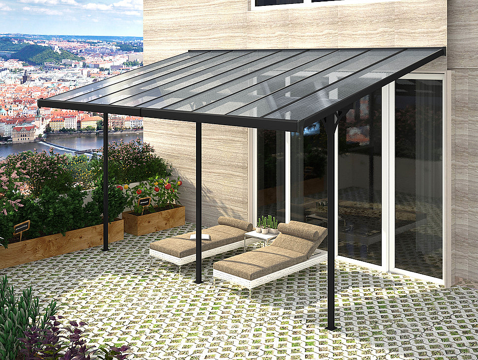 Stabilná a robustná konštrukcia z hliníkových profilov a 6mm silného polykarbonátu so 100% UV ochranou.