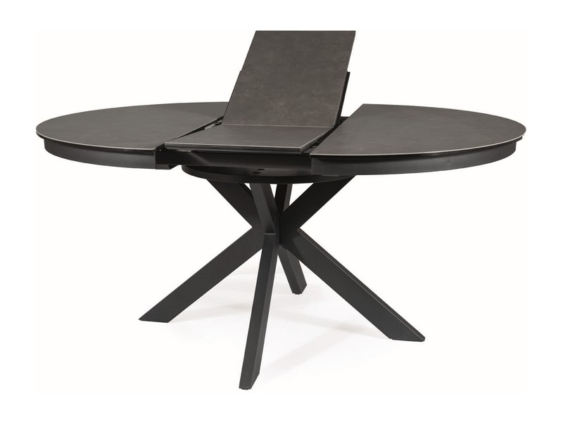 Jedálenský stôl PERIS je v atraktívnom a modernom prevedení. Je vhodný do rôznych typov interiérov, modernej kuchyne, či jedálne. Doska jedálenského stola je vyrobená z v tvrdeného skla a hispánskej keramiky. Konštrukcia stola je z kovu. Stôl je okrúhly, po rozklade je oválny.Je vhodný pre 4 – 6 osôb.Rozmery (š,v,h): 120-160 x 76 x 120 cm.Dodávame v demontovanom stave.