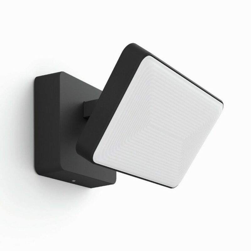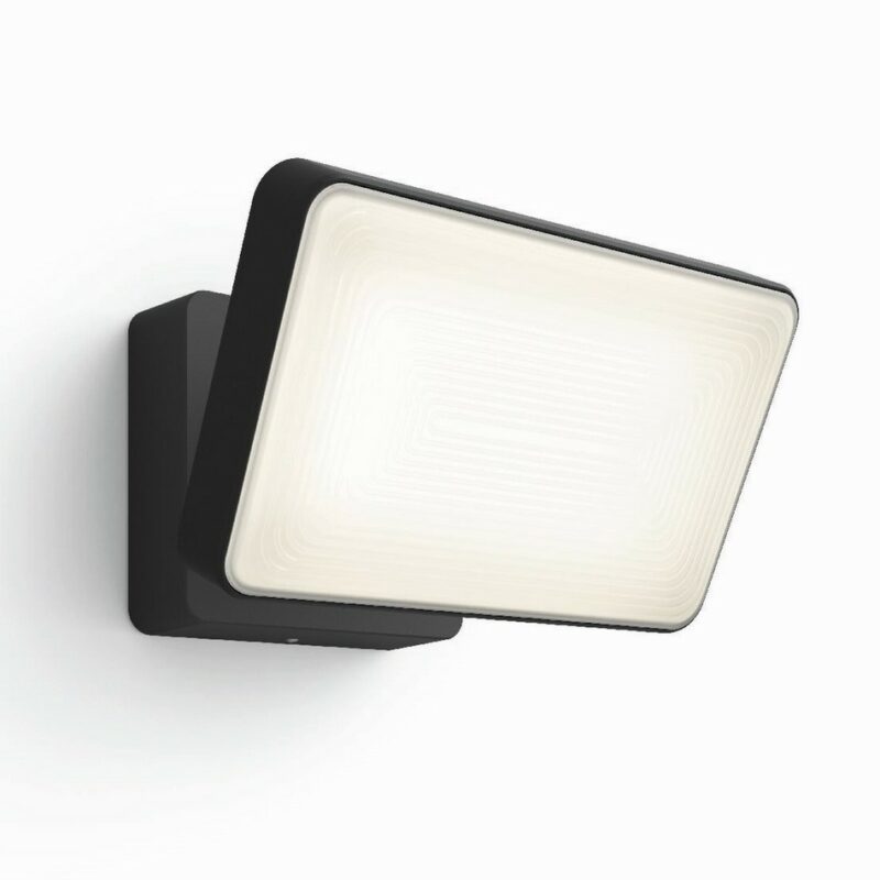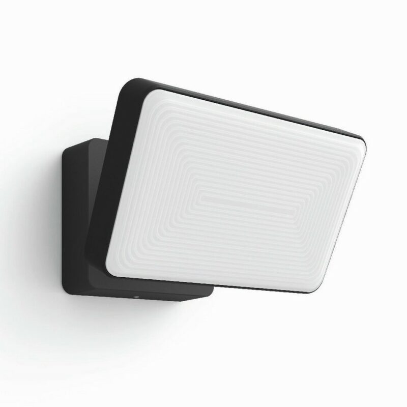Vonkajší nástenný reflektor Welcome z kolekcie smart záhradného osvetlenia Philips Hue výborne nasvieti požadované vonkajšie priestory svojim silným stmievateľným teplým svetlom v teplote chromatickosti 2700 K. Na jeho výrobu bola použitá hliníková zliatina v čiernej farbe v kombinácii s bielym mliečnym plastom s jemným vzorom.Svit vychádza z integrovaných úsporných vysoko výkonných LED diód Hue White. Teplota bieleho svitu je stmievateľná pomocou diaľkového ovládača Philips Hue Dimmer (nie je súčasťou balenia) či cez mobilnú aplikáciu, ktorú je možné stiahnuť do vášho smartfónu. Životnosť zdroja je extrémne dlhá až 25 000 hodín. Príkon LED zdroja činí 1 x 28 W so svietivosťou až 2300 lm.Krytie IP44 označuje vodeodolnosť a vhodnosť na použitie vo vlhkom vonkajšom prostredí. Celkové rozmery svietidla sú 15,3 x 22 x 16 cm. Je určené na napájanie zo siete na 220–240 V a vzťahuje sa naň záruka 2 roky.