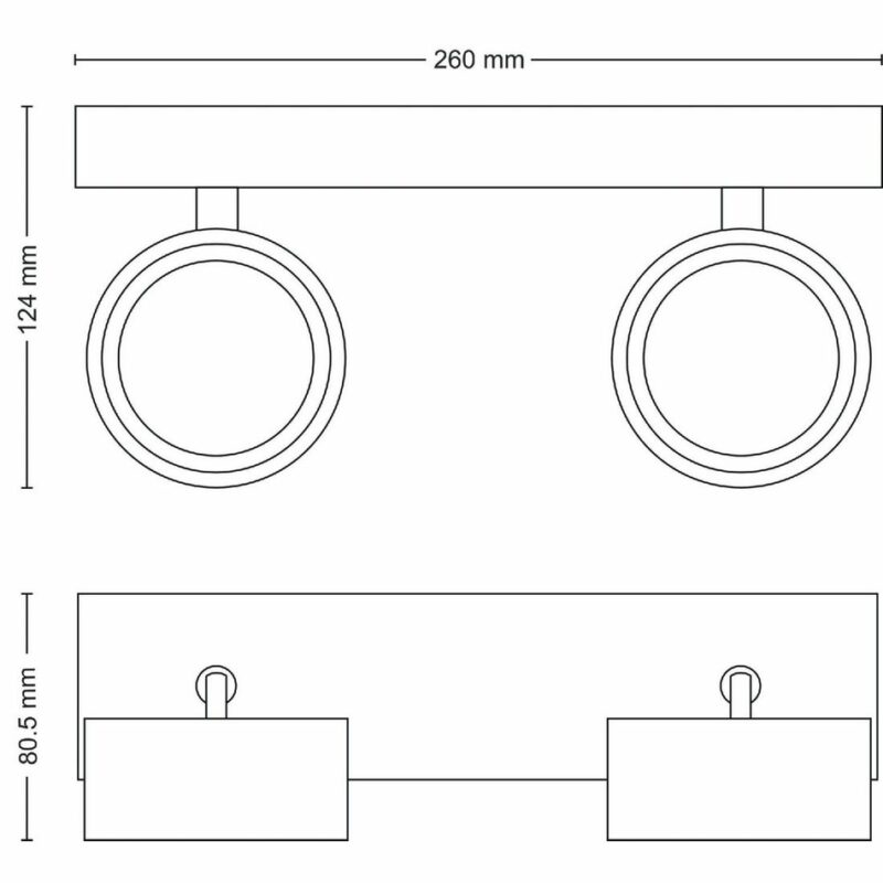 Dvojbodové svietidlo Bracia z kolekcie fukčného osvetlenia značky Philips s hranatou základňou a dvoma reflektorovými difúzormi vynikne v každom moderne zariadenom interiéri a dostatočne osvieti vašu predsieň, chodbu či spálňu. Rad LED bodových svetiel Bracia je určený na osvetlenie domácnosti teplým bielym svetlom.Nadčasové prevedenie a kvalita spoločnosti Philips predstavuje dokonalé riešenie, ktoré vydrží mnoho rokov. Nastaviteľné hlavy a široký vyžarovací uhol zaistia veľkorysé osvetlenie každej miestnosti. Bodové svetlá Bracia sú perfektné aj na osvetlenie kuchynských pracovných plôch alebo iných miest, kde potrebujete dostatok jasného svetla.Svit zaisťuje integrovaný LED zdroj s príkonom 2 x 5,5 W so svietivosťou až 2 x 550 lm a teplotou chromatickosti 2700 K. Svietidlo je vybavené funkciou EyeComfort, ktorá šetrí vaše oči a neoslňuje. Reflektory je možné otáčať a vyklápať, a tým nasmerovať svetelný lúč tak, aby perfektne nasvietil požadované miesto. Životnosť zdroja dosahuje 25 000 hodín.Svietidlo je vyrobené z kvalitného kovu v bielej farbe. Celkové rozmery svietidla sú 12,5 x 26 x 8 cm. Montáž svietidla vám zaberie iba chvíľku vďaka technológii click!FIX. Je určené na napájanie zo siete na 220-240 V. Typ zdroja: integrovaný LED zdroj.