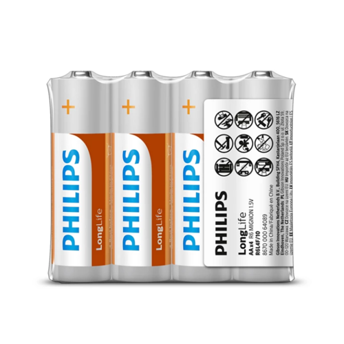 Pre všetky výrobky s nízkou spotrebou vyberte batérie LongLife. Zinko-chloridová technológia je perfektná pre vaše hodiny, rádiá, kalkulačky a diaľkové ovládače. Vysoko kvalitná zinko-chloridová technológia zaisťuje pri použití v zariadeniach s nízkou spotrebou energie dlhú životnosť batérie. Tieto batérie Philips garantujú nulový obsah škodlivých ťažkých materiálov, ako napr. kadmium a ortuť.Pri každej batérii, ktorá sa nepoužíva, dochádza k strate energie. Zaručujeme, že batérie budú v rámci vyznačenej životnosti dosahovať najmenej 80 % svojej pôvodnej kapacity. Na uľahčenie rozlíšenia najbežnejších veľkostí batérií v súlade s priemyselnými štandardmi je používané farebné kódovanie pre veľkosti batérií. Univerzálne symboly na obale nevyžadujúce znalosť jazyka vysvetľujú spôsoby a miesta použitia, pre ktoré je batéria určená.