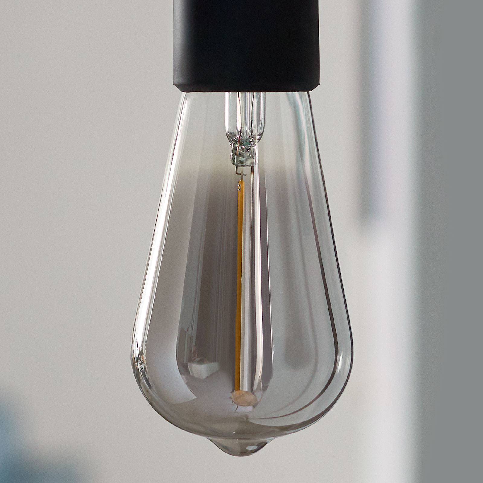 LED žiarovka E27 2,3 W v rustikálnom tvare, s dymovo sfarbeným sivým sklom Táto LED žiarovka s päticou E27 v krásnom rustikálnom tvare a s dymovo sfarbeným sivým sklom vyzerá mimoriadne dobre ako dekoratívny zdroj svetla vo všetkých typoch svietidiel bez tienidla.