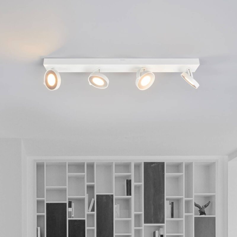 Moderný stropný LED reflektor Clockwork s bielou povrchovou úpravou Tento stropný LED reflektor sa dokonale hodí do moderných interiérov, pričom má vďaka svojej bielej povrchovej úprave skutočne univerzálne možnosti využitia. Hlavy stropného reflektora majú okrúhly, plochý tvar a podľa potreby je nimi možné aj pohybovať, nakoľko sú vybavené kĺbmi. Táto vlastnosť a fakt, že je svietidlo vybavené štyrmi zdrojmi svetla umožňujú dosiahnutie osvetlenia, ktoré je dostatočne jasné a zároveň je ho možné individuálne nastavovať. Svietidlo Clockwork sa výborne hodí na použitie do kuchyne alebo ako stropné svietidlo v obývačke alebo na chodbe. Jeho moderný dizajn je pritom nenápadný, ale štýlový.