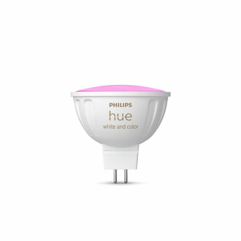 Chytrá úsporná stmievateľná LED žiarovka Philips Hue Bluetooth White and Color Ambiance s päticou GU5.3 a tvarom zdroja MR16 je určená pre vaše existujúce bodové svietidlo. Jej príkon je 1 x 6,3 W a životnosť dosahuje až 25 000 hodín pri až 50 000 spínacích cykloch. Šetrí elektrickú energiu v energetickej triede G s okamžitým 100% svetelným výkonom.Môžete ju ovládať cez mobilnú aplikáciu vo vašom smartfóne pripojením cez Bluetooth alebo cez mostík Philips Hue Bridge (nie je súčasťou balenia) s verziami systémov iOS 15 a vyššou a Android 10.0 a vyššou alebo príslušenstvom Philips Hue (diaľkové ovládanie Dimmer Switch alebo Tap).Ponúka 4 svetelné schémy bieleho svetla s teplotou chromatickosti v rozmedzí od 2000 K až po 6500 K v rôznych intenzitách: hrejivé teplé biele svetlo pre odpočinok a relaxáciu 2000 K, príjemné teplé biele svetlo vhodné na čítanie 2700 K, neutrálny jasný biely svit , prácu a učenie 4000 K a energizujúci chladný biely odtieň pre povzbudenie 6500 K. Jednoducho volíte a nastavujete teplotu aj intenzitu bieleho svetla vášho domova podľa vašej nálady, činnosti alebo potrieb. Alebo vyberajte z až 16 miliónov odtieňov farebného svitu. Či už vyberiete biele alebo farebné svetlo, vždy môžete regulovať jeho intenzitu plynulým stmievaním.Môžete nastavovať svetelné rozvrhy, aby vás svetlo prebúdzalo ako pri východe slnka, ovládať svetlo svojho domova odkiaľkoľvek, aj keď práve nie ste doma alebo systémom geofencing zaistíte, že vás svetlo privíta, keď sa vraciate domov a samo zhasne, keď z domu odchádzate.Mostík Bridge vám zároveň ponúkne možnosť hlasového ovládania cez podporovaných hlasových asistentov Amazon Alexa, Google Assistant, Apple HomeKit alebo Microsoft Cortana. Budete si tak môcť svetlá vášho domova užívať múdro a naplno.Je určená na vstupné napätie 12 V AC. Index podania farieb CRI je rovný hodnote 80. Chytré žiarovky Philips Hue MR16 fungujú rovnako ako štandardné žiarovky MR16 na nízkom napätí 12 V – sú tu kompatibilné s väčšinou transformátorov.Vlastnosti: