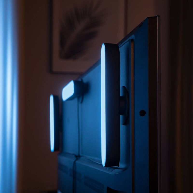 Svetelná lišta Philips Hue White a Color Ambiance Play kompatibilná so systémom Smart Home – zábavné zážitky pre váš domov! Toto stolové LED svietidlo pochádza z inteligentnej série Philips Hue Play a stará sa o fascinujúce svetelné zážitky vo vašej domácnosti. So svojimi 16 miliónmi farieb sa stará o dokonalé zladenie farieb s hudbou, filmami či videohrami (prostredníctvom funkcie Hue Sync), aby tak mohli vznikať fascinujúce zábavné zážitky a skvelá atmosféra. Rovnomerný rám zabezpečuje optimálne rozloženie svetla – od podlahy, cez stenu, až po strop. Okrem iného možno svietidlo variabilne montovať (horizontálne, vertikálne alebo priamo na televízor alebo počítač), výsledkom čoho je príjemný, nepriamy a neoslepujúci svetelný efekt. Technické údaje/kompatibilita: – kompaktný dizajn – s funkciou White & Color Ambiance – dokonalé zladenie s hudbou, filmami alebo videohrami – kompatibilné s Philips Hue Sync – rozšíriteľné o svietidlo určené na rozšírenie a 5 m predlžovací kábel (pozri príslušenstvo) – vrát. sieťového dielu Upozornenie: na integrovanie do systému Smart Home je potrebné zariadenie Hue Bridge (pozri príslušenstvo)