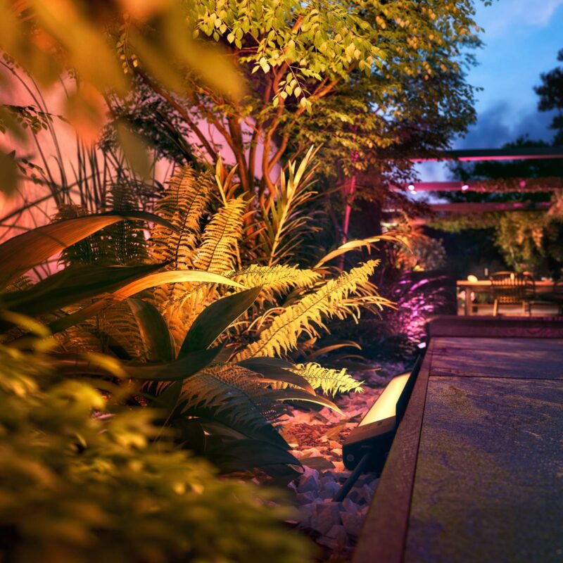 24 V LED podlahová svetelná lišta Philips Hue White and Color Ambiance Amarant pre osvetlenie oblasti vo vonkajších priestoroch Väčšie úseky vo vonkajšej oblasti, ako sú stromy, živé ploty, záhradné altánky alebo fasády, je možné efektívne zdôrazniť pomocou stojaca lampa Philips Hue Amaranth. Vytvára na jednej strane plochý svetelný efekt na umývanie stien – vďaka technológii White and Color Ambiance, voliteľne v teplej bielej až dennej bielej, ľubovoľnom farebnom tóne a plynule nastaviteľnom jasu. Za účelom ovládania je Amarant integrovaný do systému Philips Hue alebo iného ZigBee založeného na ZigBee pomocou mostíka (pozri príslušenstvo). V závislosti od konfigurácie to umožňuje ovládanie pomocou aplikácie, v scénach s inými inteligentnými vonkajšími svetlami alebo hlasovým príkazom. Amarant sa dodáva s uhlovým profilom, ktorý umožňuje vyrovnanie a podoprenie svetelnej tyče na pätách a zabraňuje oslneniu zozadu. Prevádzka prebieha pri 24 V nízkom napätí; Vhodné napájacie zdroje pre pripojenie na 230 V nie sú súčasťou dodávky a je potrebné ich objednať prostredníctvom príslušenstva. Pretože Amarant má vstup a výstup, je možné pripojiť a prevádzkovať niekoľko jednotiek za sebou. Technické údaje / kompatibilita: – Rozsah dodávky: žiarovka, uholníkový profil, pripojovací kábel 45 cm, T-konektor, predlžovací kábel 250 cm – ovládateľné a stmievateľné pomocou aplikácie Hue – Teplá biela (2 000 K) až denná biela (6 500 K) – 16 miliónov farieb pre pôsobivé vonkajšie osvetlenie – Kompatibilné s existujúcim systémom Philips Hue – Hlasové ovládanie je možné pomocou Amazon Alexa, Apple HomeKit a Google Assistant – Môže byť prepojený s detektorom pohybu Hue Outdoor Sensor (pozri príslušenstvo) – Kompatibilné s Hue Sync – svetlo v súlade s hudbou – je potrebné pripojenie k mostu Hue (pozri príslušenstvo) – vyžaduje externé napájanie 24 V (pozri príslušenstvo) Poznámka: Pre správne fungovanie vonkajšieho osvetlenia Hue by mala byť prvá vonkajšia lampa vzdialená maximálne 10 m od mosta alebo vnútornej lampy Hue. Všetky ostatné svetlá sa potom musia inštalovať do maximálnej vzdialenosti 20 m. Platí však toto: čím menšia vzdialenosť, tým lepšia.