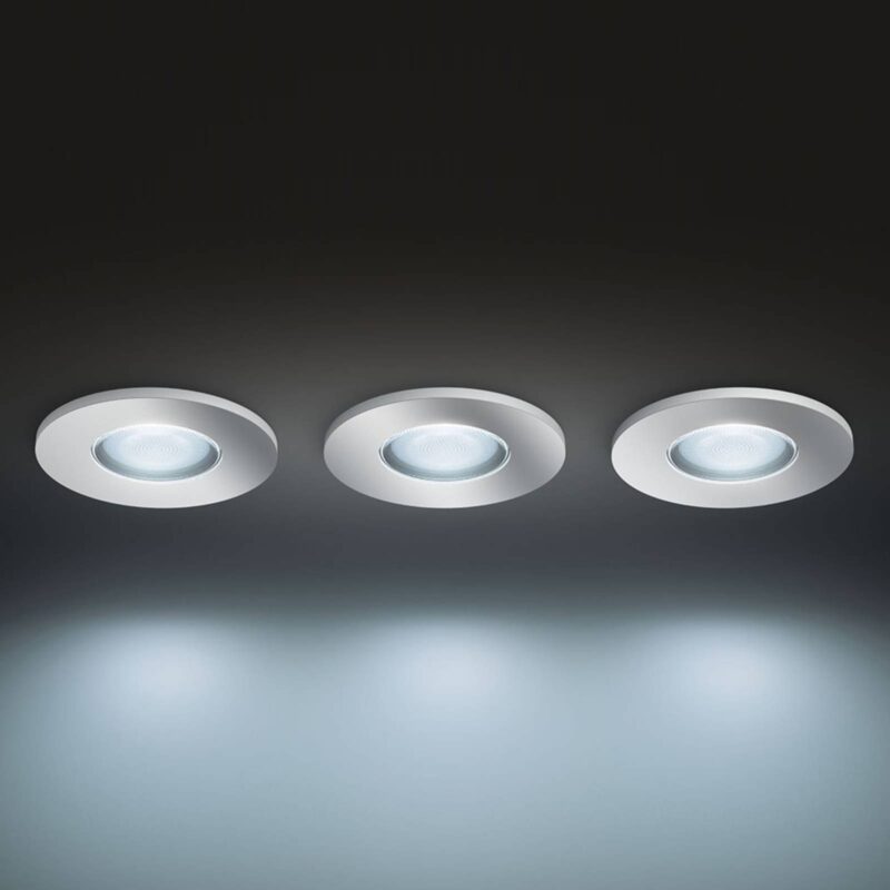 LED zapustené svetlo Adore v sade 3 – ovládateľné stmievačom Hue alebo pomocou aplikácie Hue (ZigBee alebo Bluetooth) Zapustené LED svietidlo White Ambiance Adore sa skladá z celkovo troch zapustených svietidiel, ktoré sú okrúhleho tvaru a jemnej striebornej farby. Sú ideálne na použitie v kúpeľni, kde sú obzvlášť pôsobivé kvôli nastaviteľnosti farby svetla. Môžete si vybrať medzi teplou bielou a denným svetlom (približne 50 000 bielych tónov), vďaka čomu je použitie veľmi flexibilné. Jasné zapustené miesta vytvárajú priame smerové svetlo, ktoré sa privádza presne tam, kde je to potrebné. Vstavané svetlá je možné ovládať rôznymi spôsobmi. Na jednej strane je dodávaný stmievací spínač, ktorým je možné napríklad nastaviť jas alebo zvoliť medzi prednastavenými svetelnými scénami. Ovládanie pomocou smartfónu alebo tabletu prostredníctvom aplikácie Hue je možné aj bez ďalšieho príslušenstva s Bluetooth alebo pomocou mosta Philips Hue Bridge pomocou technológie ZigBee. Integrácia cez most umožňuje prístup k celému radu funkcií, ktoré má táto praktická žiarovka pripravené. Vlastnosti / kompatibilita – Ovládanie pomocou dodávaného stmievača Hue – ovládateľné príslušnou aplikáciou Hue (ZigBee) a Hue Bluetooth – Nastavenie rôznych teplôt farieb: teplá biela (2 200 K) na denné svetlo (6 500 K) – možnosť inteligentného ovládania osvetlenia a: integrácia ZigBee cez most a smerovač, ako napríklad most Philips Hue (pozri príslušenstvo); To umožňuje ovládanie na mieste alebo mimo domova pomocou aplikácie Hue a možnosť hlasového ovládania cez Amazon Alexa, Apple HomeKit (Siri) a Google Assistant . – Možnosť inteligentného ovládania osvetlenia b: Priame ovládanie na mieste pomocou Bluetooth pomocou bezplatnej aplikácie Hue Bluetooth. Ak v ovládaní Bluetooth používate viac ako desať žiaroviek, odporúča sa použiť mostík. Poznámka: Pri použití stmievača nie sú k dispozícii všetky funkcie!