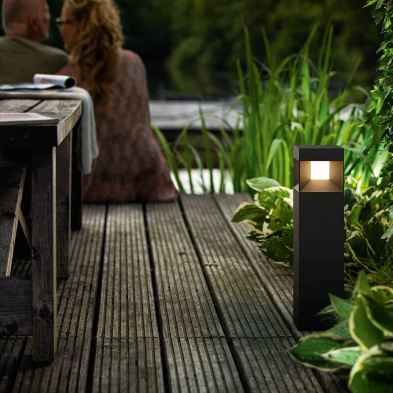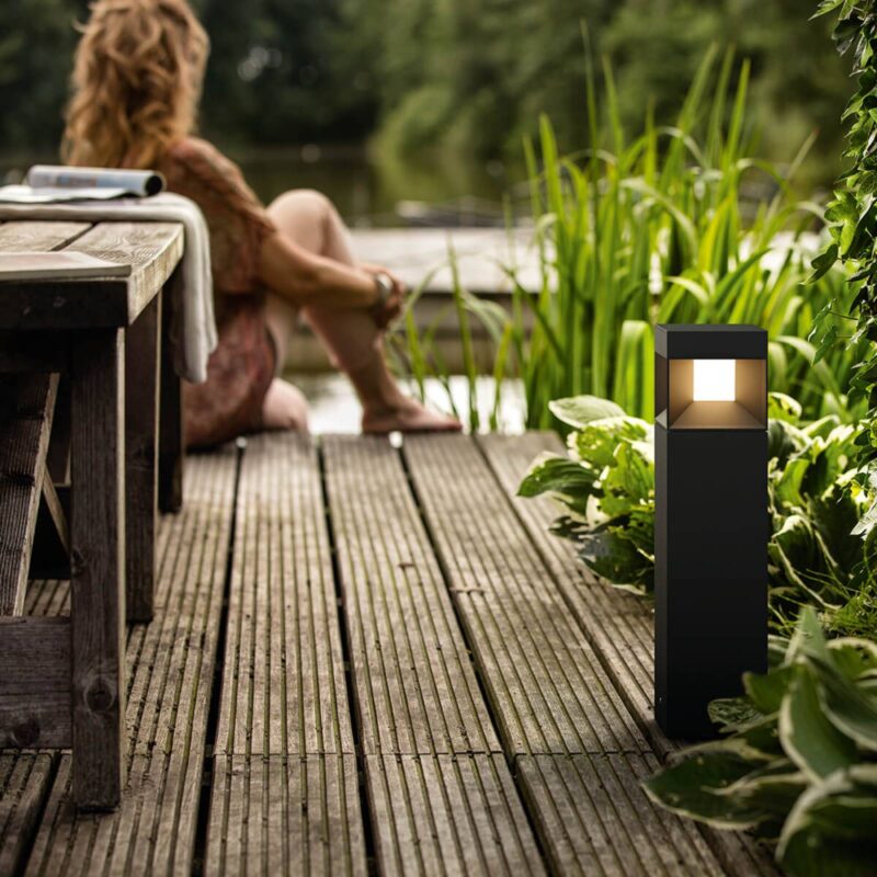 Ultra moderné stĺpikové LED svietidlo Parterre s tienidlom v tvare kocky Parterre je 40 cm vysoké, geometricky tvarované stĺpikové LED svietidlo, ktoré nezaujme len skvelým osvetlením, ale aj svojím tienidlom v tvare kocky, ktoré vyvoláva najmä v noci magický dojem. Hneď, ako sa totiž vonku zotmie a vy svietidlo zapnete, zažiari v ňom vznášajúca sa svietiaca kocka, ktorá sa stane skvostom vašej záhrady.
