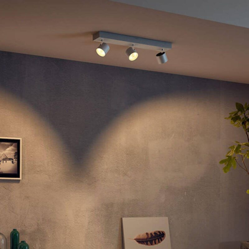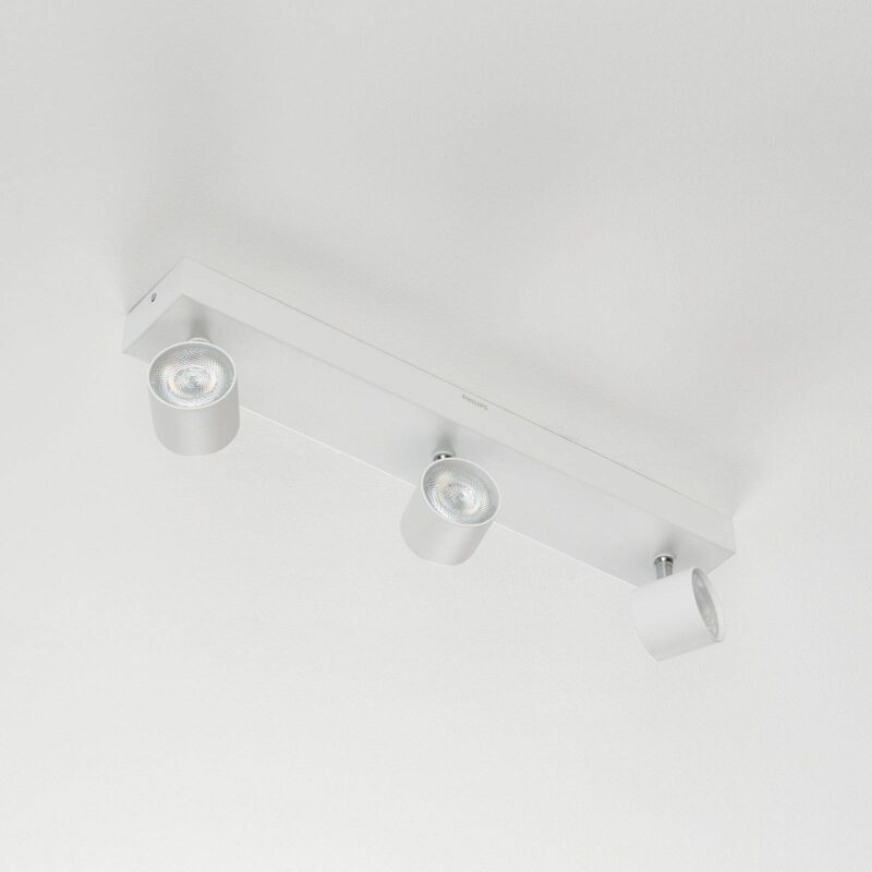 Stmievateľný stropný LED reflektor Star v bielej farbe, s 3 zdrojmi svetla a efektom WarmGlow Vďaka modernému dizajnu, bielej farbe a predovšetkým flexibilnému osvetleniu je stropný LED reflektor Star s troma zdrojmi svetla skutočne všestranným talentom, ktorý môže svoje energeticky úsporné a mimoriadne flexibilné osvetlenie predviesť v mnohých miestnostiach. Tri hlavy svietidla je možné ľubovoľne nastavovať a LED žiarovky, ktoré sú do nich vsadené sa dajú nielenže stmievať takmer každým stmievačom, ale vďaka efektu WarmGlow dokážu počas procesu stmievania aj meniť farbu svojho svetla. Čím je svetlo tmavšie, tým teplejším sa stáva. Vďaka tejto vlastnosti sa stropný LED reflektor nepýši len jasným svetlom, ale aj pohodlným a útulným osvetlením vhodným pre príjemne strávené večery či jemným tlmeným osvetlením počas pozerania televízie a odpočinku.