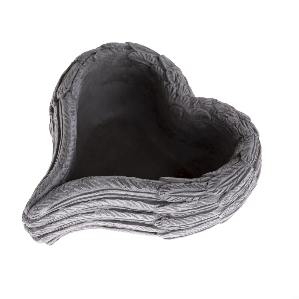 Betónový kvetináč je pietna dekorácia v tvare srdca, ktorá vyjadruje úctu a spomienku na zosnulých. Symbolika srdca predstavuje lásku a večné puto, preto sa tento kvetináč skvele hodí na umiestnenie na cintorín alebo pietne miesto. Dekoratívny okraj zdobený reliéfom pripomínajúcim anjelské pierka dodáva kvetináčovi jemný a duchovný charakter.Vďaka rozmerom 20 x 8,5 x 18,5 cm je kvetináč vhodný pre menšie kvetinové aranžmány, živé aj umelé kvety alebo pre drobné dekorácie ako mach a sviečky. Je vyrobený z kvalitného betónu, ktorý zaručuje vysokú odolnosť voči poveternostným vplyvom, takže ho možno používať celoročne vo vonkajšom prostredí. Stabilné prevedenie navyše zaisťuje, že dekorácia pevne stojí aj v náročnejších podmienkach.Povrch kvetináča má prírodnú sivú farbu s decentnou patinou, ktorá podčiarkuje jeho symboliku a ľahko sa kombinuje s ďalšími pietnymi doplnkami, napríklad s anjelskými soškami, lampášmi alebo vázičkami na kvety. Tento kvetináč sa stane dôstojným a vkusným doplnkom na uctenie pamiatky vašich blízkych.Hlavné výhody produktu: