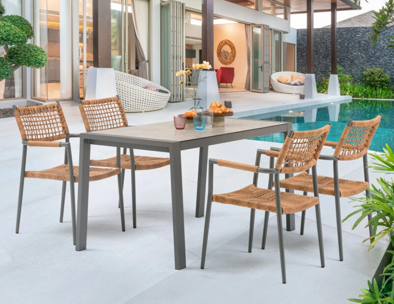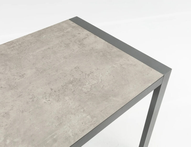 Jedálenský stôl Pilatus s antracitovým hliníkovým podstavcom a odolnou HPL doskou ponúka moderný dizajn, stabilnú konštrukciu a vysokú odolnosť voči poveternostným vplyvom.