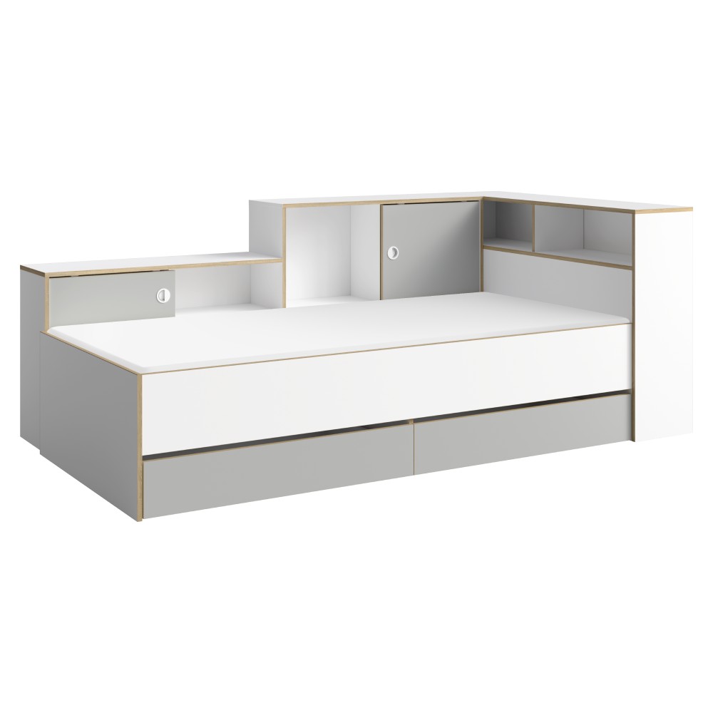 Domovská stránka » Katalóg » Pinio jednolôžková posteľ s roštom a úložným priestorom biela / sivá