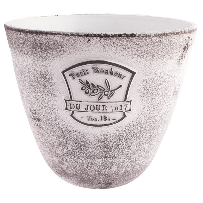 Štýlový plastový obal na kvetináč skvele doladí každú miestnosť, terasu aj balkón. Je vyrobený z recyklovaného ekoplastu s dlhou životnosťou. Má pekný rustikálny vzhľad s bielym povrchom s patinou a plastickým dekoratívnym prvkom v štýle Provence.
