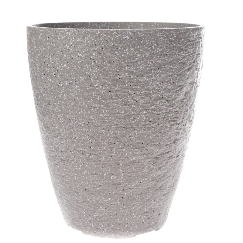 Elegantný obal na kvetináč bude krásnym doplnkom každého kvetu aj vášho interiéru. Má pekný jemný nepravidelný vzor, ktorý pripomína zvrásnenú kôru. Obal je vhodný aj do vonkajších priestorov. Je vyrobený z ekoplastu, ktorý je trvanlivý, ľahký a recyklovateľný.