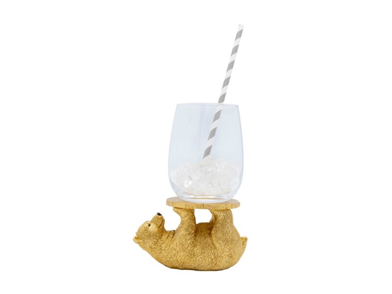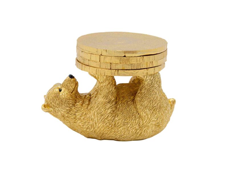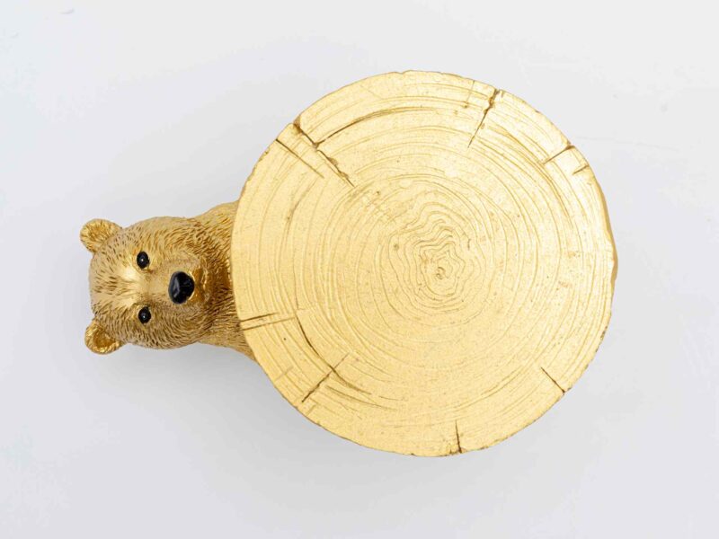 Ručne maľovaná dekorácia Playing Bear v zlatej farbe, ktorá vám pomôže rozžiariť stolovanie.